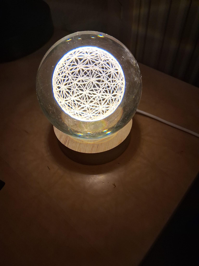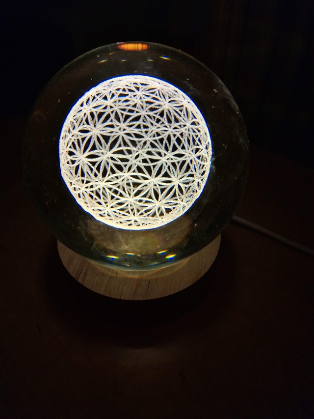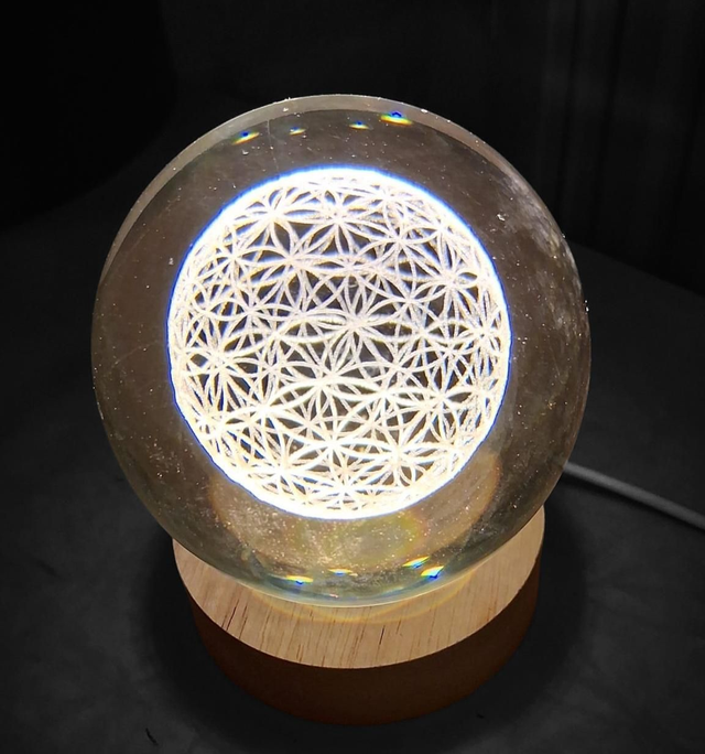 Blume des Lebens Kugel, 8cm Durchmesser, mit Beleuchtung USB Kabel