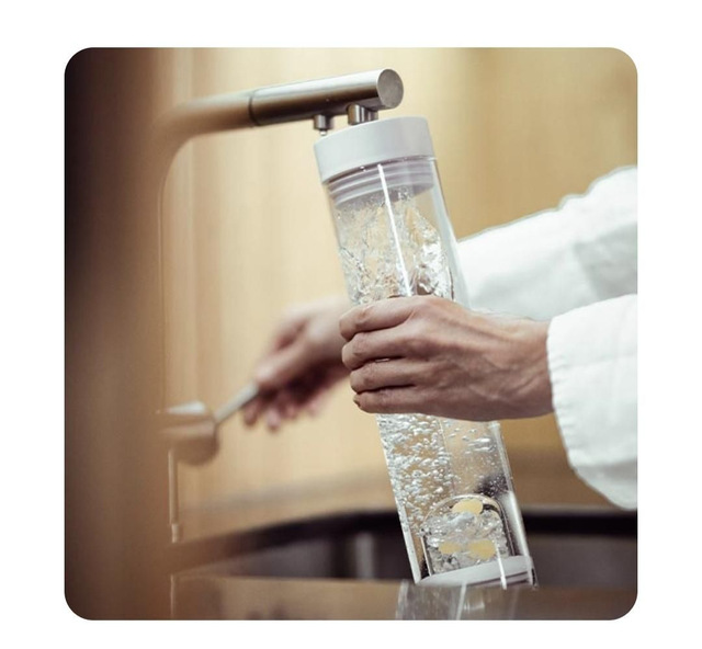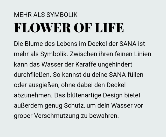 Aus Edelstahl, Blume des Lebens am Ausschank