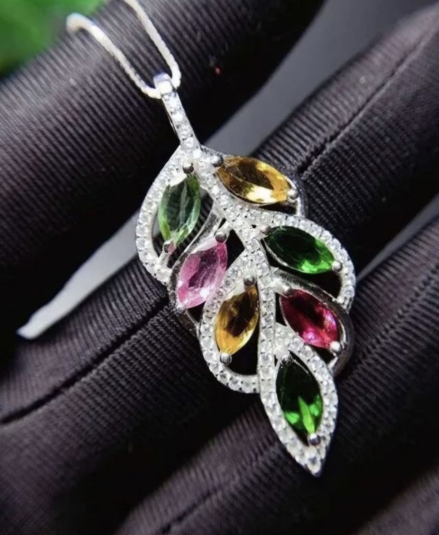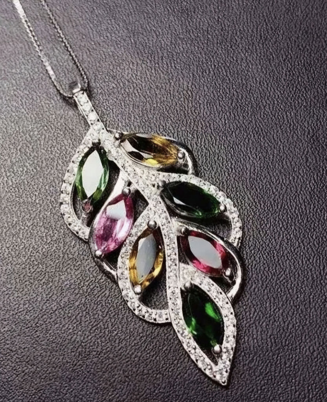 Wunderschöne Turmalin Anhänger mit 7 natürlichen mehrfarbigen Turmalin 925 und Silberkette